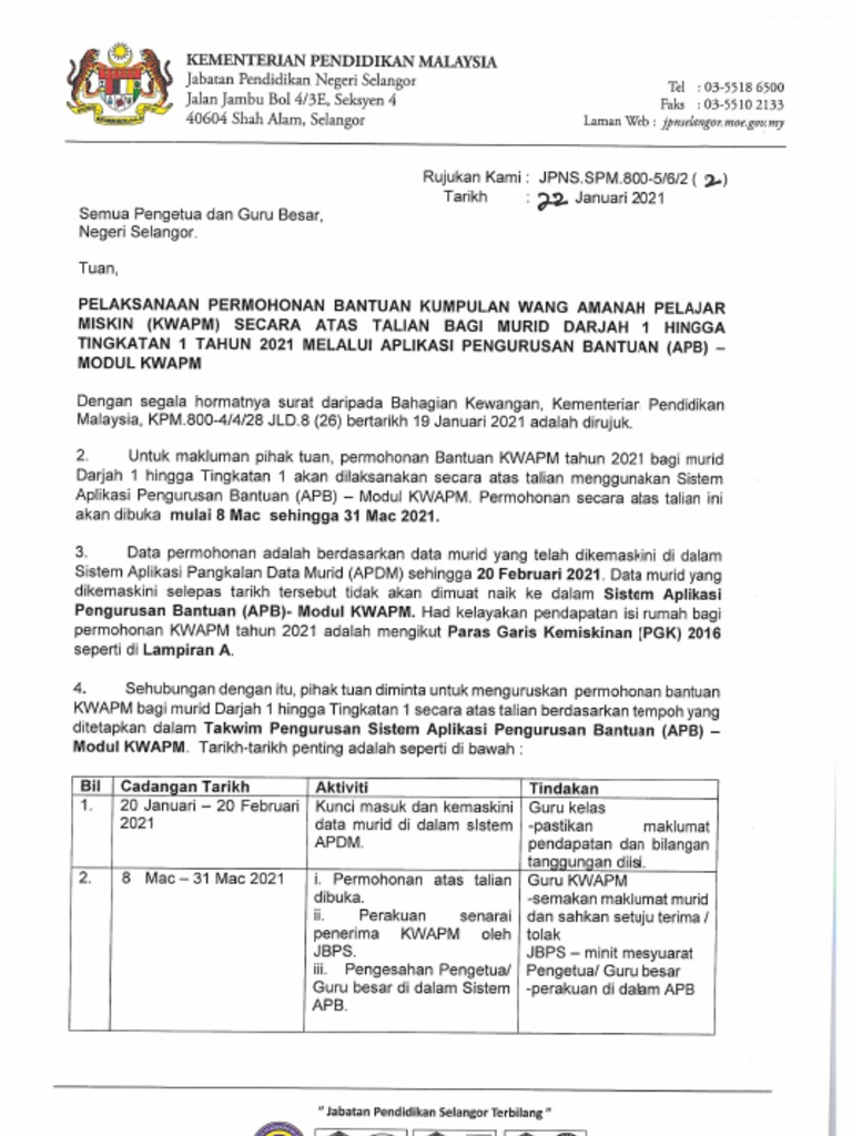 Log In Apdm Kpm Aplikasi Pangkalan Data Murid Online from www.sistemguruonline.my Objektif utama bantuan kwapm ini adalah untuk memberi bantuan secara khusus kepada murid miskin warganegara malaysia di sekolah kerajaan/bantuan kerajaan dari semua bangsa. *borang ini hendaklah disertakan bersama dengan surat permohonan bertulis daripada pemohon. Hal ini kerana permohonan akan diproses mengikut maklumat dalam borang yang dikemukakan pemohon serta. Borang permohonan bantuan kwapm online. Borang permohonan hendaklah diisi oleh. Berita baik buat pekebun kecil dan penoreh getah yang ingin membuat permohonan bantuan musim tengkujuh tahun 2019. Pdf borang permohonan bantuan kwapm 2017 ( pdf, 535 kb ) (1577 downloads) popular. Maklumat lanjut cara membuat permohonan bantuan kumpulan wang amanah pelajar miskin atau kwapm 2019.