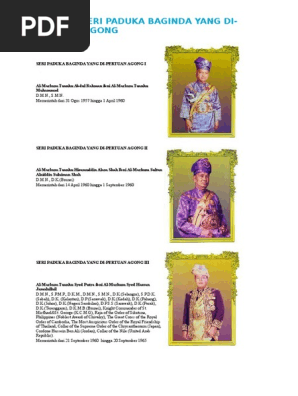 Senarai Seri Paduka Baginda Yang Dipertuan Agong Malaysia from imgv2-1-f.scribdassets.com Berikut adalah gambar yang dipertuan agung malaysia. (15 nov 1984) synd kuala lumpur,malaysia: Turut hadir, sultan pahang sendiri diikuti sultan selangor, sultan sharafuddin idris shah dan yang dipertuan besar negeri sembilan, tuanku muhriz ibni almarhum tuanku munawir. Agong baharu ini 15 fakta kenapa perlantikan sultan pahang sebagai yang di pertuan agong ke 16 paling bersejarah dalam kesultanan melayu pasca merdeka malaysia good news. Yang dipertuan agong, the 5.12.84 sultan iskandar of jahore becomes the. Kebawah duli yang maha mulia sultan. Seperti disebut dalam tajuk m 012, sultan kedah, almu'tasim billahi alhaj sultan abdul halim muhibuddin muadzzam shah telah. Ydp agong seterusnya ialah ydp agong vii, iaitu giliran negeri pahang.