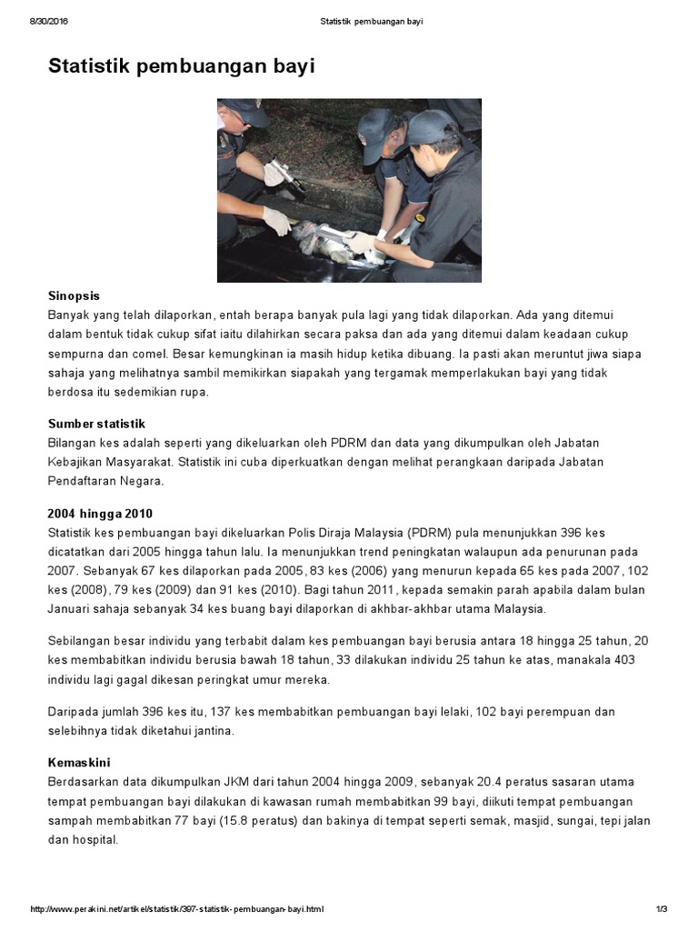 Kajian kes di fakulti pendidikan. (keratan ini hanya terdapat di dalam versi bahasa melayu). 17 mac 2021 kes pembuangan bayi di negara. Remaja perempuan paling ramai lari dari rumah. Seperti yang kita semua tahu, isu pembuangan bayi di malaysia ini bukan lah sesuatu yang baru. Polisi gerak cepat, perempuan pembuang bayi ini akhirnya ditangkap. Sikap mahasiswi terhadap gejala pembuangan bayi: Namun, bukan cerita penemuan bayi itu yang menjadi viral, tetapi post francis yirdaki ct mengenai keratan beberapa akhbar tempatan yang menaikkan kemarahan dan kekecewaan netizen. Keratan akhbar harian metro, 17 september 2012, tajuk : Keratan akhbar utusan malaysia, 22 ogos 2010 tajuk : Menurut pandangan anitayahya (2007), pengguguran dan pembuangan bayimembawa maksud. Kita boleh mengurangkan kes pembuangan bayi dengan mengadakan ceramah kepada remeja remaja yang sedang mengandung anak luar nikah. Koleksi keratan akhbar berikut di kumpul dari sumber luar.