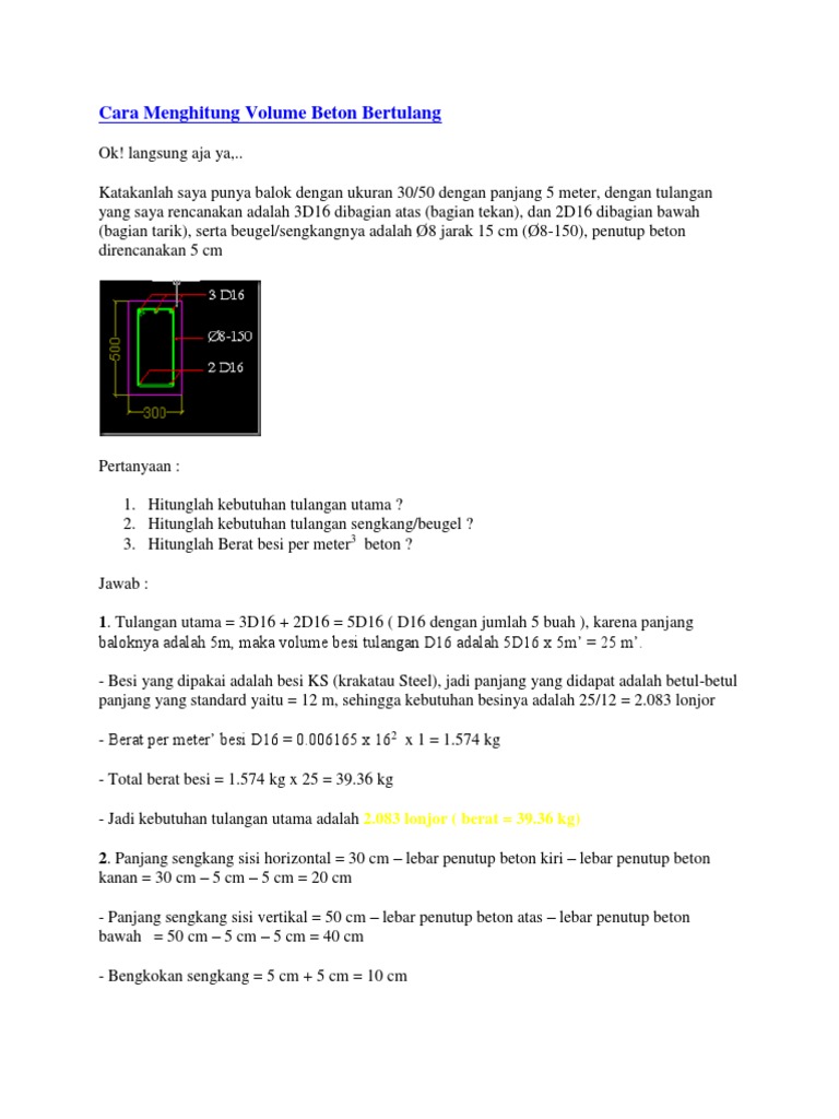 Cara Menghitung Volume RAB Balok Beton, Pelat Lantai, dan ... from 4.bp.blogspot.com Jika kolom runtuh, maka runtuh pulalah bangunan secara keseluruhan. Penggunaan beton bertulang sebagai material bangunan dinilai menjadi pilihan tepat untuk membuat konstruksi yang tahan terhadap kerusakan. Beton bertulang dinilai bisa menjadi material terbaik untuk pembuatan konstruksi. Cara menghitung volume beton terdiri dari 2 cara, yaitu cara menghitung untuk menghitung volume beton melalui volume bangunan, saya akan melampirkan data berupa gambar dari hitungan kuantitas proyek yang pernah saya kerjakan, data ini dapat anda lihat pada gambar berikut Demikianlah beberapa tips dan trik dari cara membuat tangga beton bertulang yang baik dan benar serta wajib anda ketahui dan pelajari. Harga balok beton 20x40 / m3 = (1 m3 x harga beton jadi) + (128,275 x harga besi jadi) + 12,5 x (harga bekisting jadi). Membutuhkan bekisting dan penumpu sementara selama kontruksi. Contoh dapur bersih masak apa hari ini?